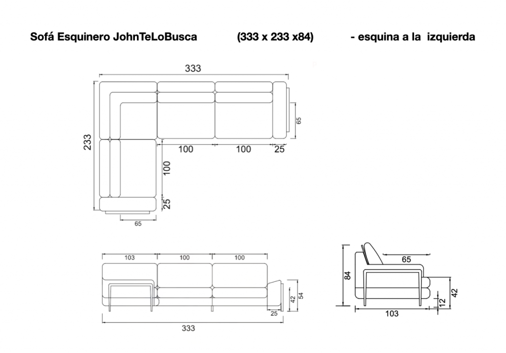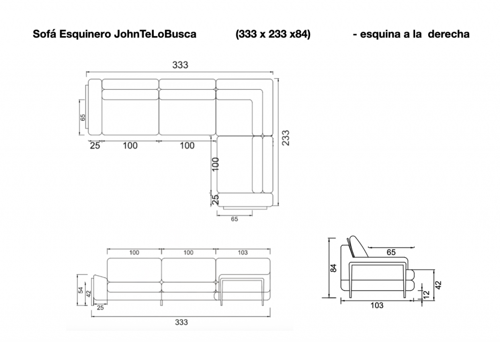 Sofá esquinero 333 x 233 cm: 3450€ (IVA incluido) – Entrega a pie de calle.