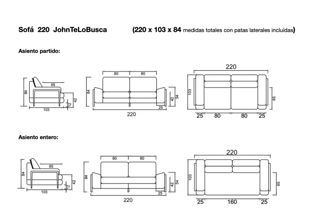 - Sofá 210 cm: 1.780€ (IVA incluido) – Entrega a pie de calle.